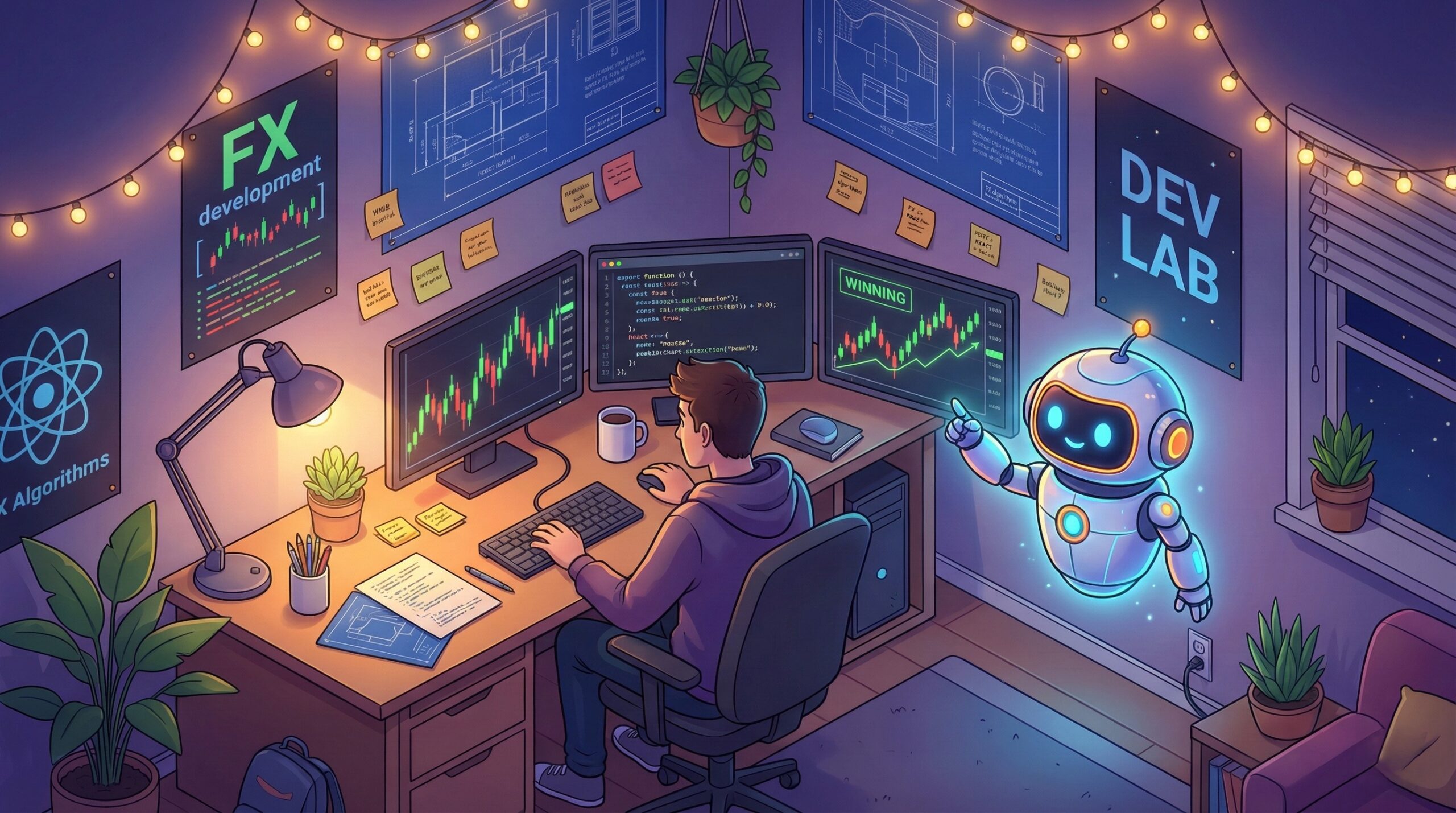 既存のツールで勝てないなら、AI(Google AI Studio)の力を借りて、「自分が勝つための最強の武器」を自分で作ればいい。 これは、現状を打破し、自分だけのトレード環境を構築して「稼げるようになるまでの過程」をありのままに記録する実験室です。